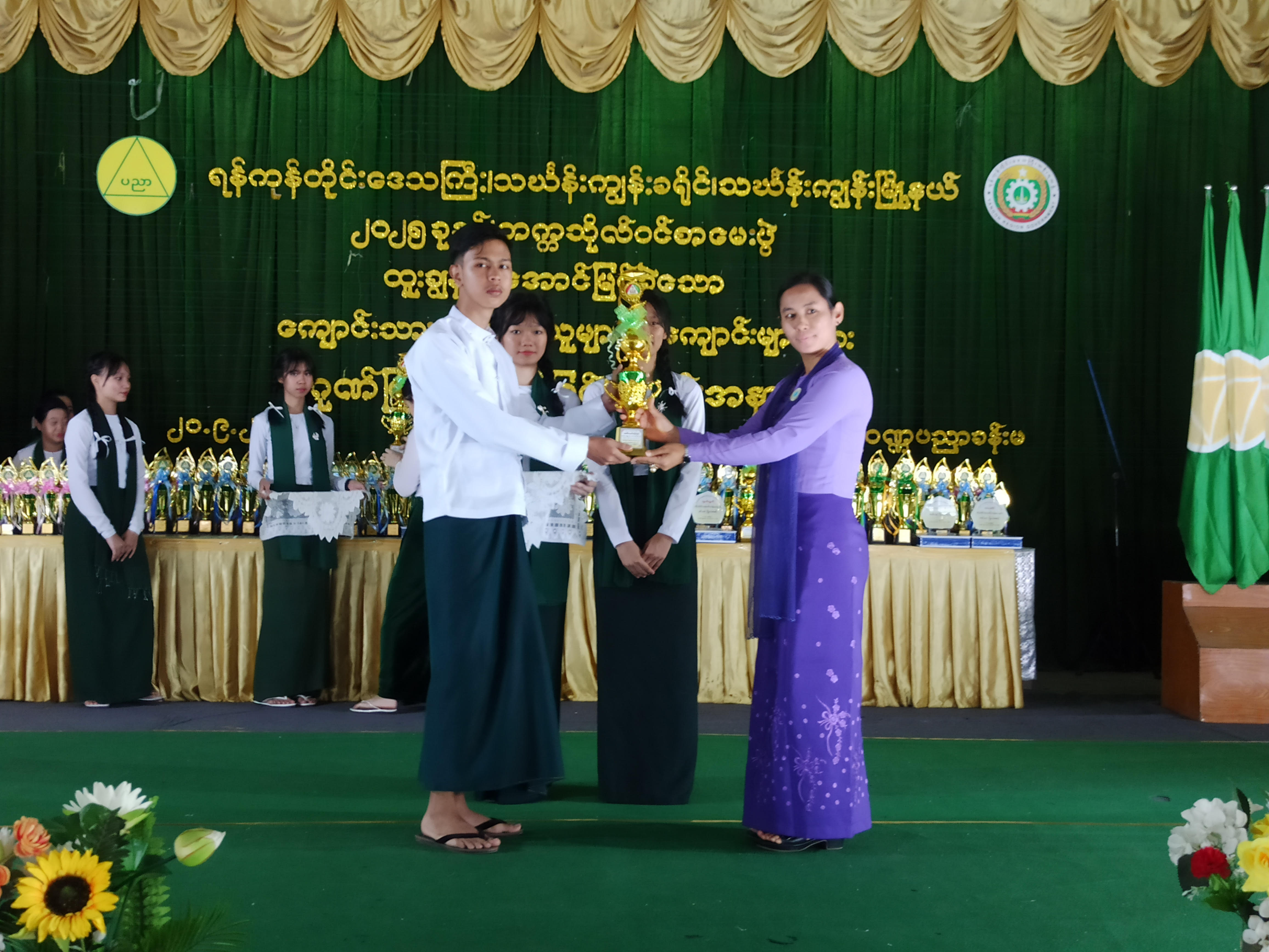The ceremony was attended by U Zaw Moe Htike, Chairperson of the District Maternal and Child Welfare Association Daw Darli Myo Oo, Township Management Committee Chairman U Hla Myo, Assistant Director of the District Information and Public Relations Department Daw Zar Zar Tun, District Education Officer Daw Su Su Khi, departmental officials at the district and township levels, invited guests, parents, school heads, teachers, and award-winning students.— Zaw Moe (Thingangyun)