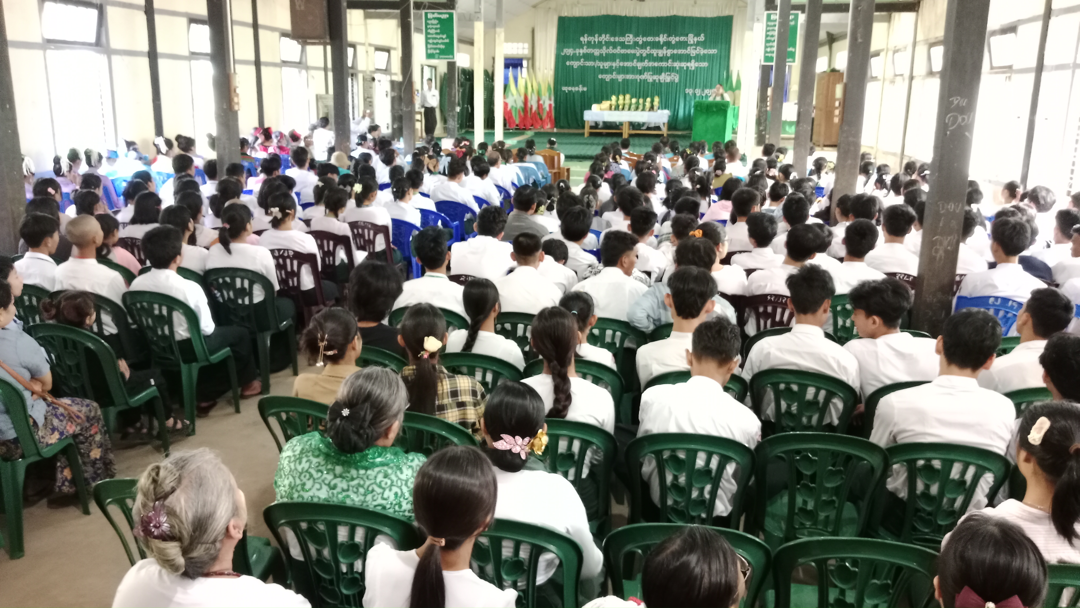 This was followed by the presentation of honorary award to Ma Janyo Wint who got six distinctions and three students who got three distinctions in 2023-2024 Academic year’s matriculation exam. Afterwards, students sang a school song. This was followed by the presentation of honorary awards to students who got two distinctions and three distinctions in the exam.