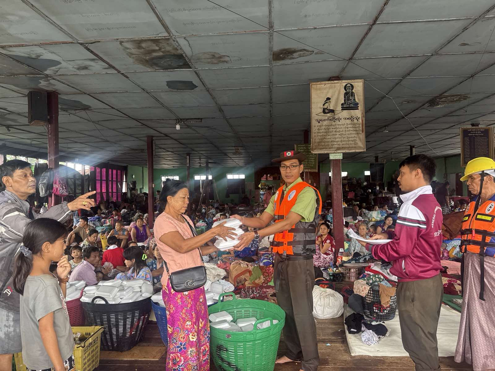 To assist those affected, the Disaster Management Team has distributed emergency supplies—including cash assistance, rice, cooking oil, canned fish, and other essentials—to around 4,200 displaced individuals now sheltered in the camps.— Saung Hnin Phyu