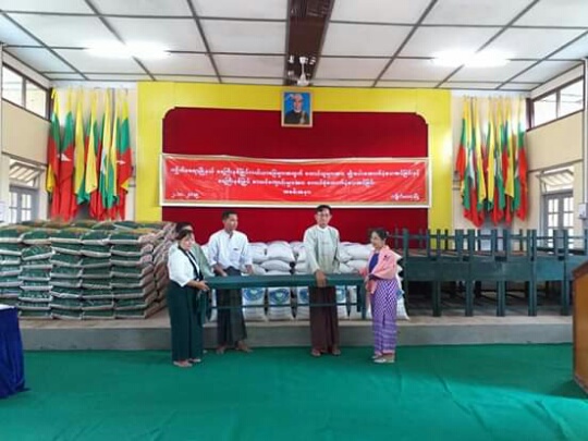 An event to present paddy seeds to farmers affected by inundation and donate desks to flood-hit schools took place at Shwe Hinthar Hall of the General Administration Department in Kyaikmaraw Township, Mon State yesterday afternoon.