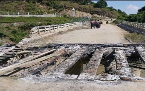 To ensure smooth transportation for the public, security personnel stationed in the area immediately undertook repairs on the bridge deck that had been damaged by the arson attack. The repair works were completed on 31 October, allowing pedestrians and vehicles to resume normal travel along the Kalay–Mawlaik road. — MNA/ KZLa