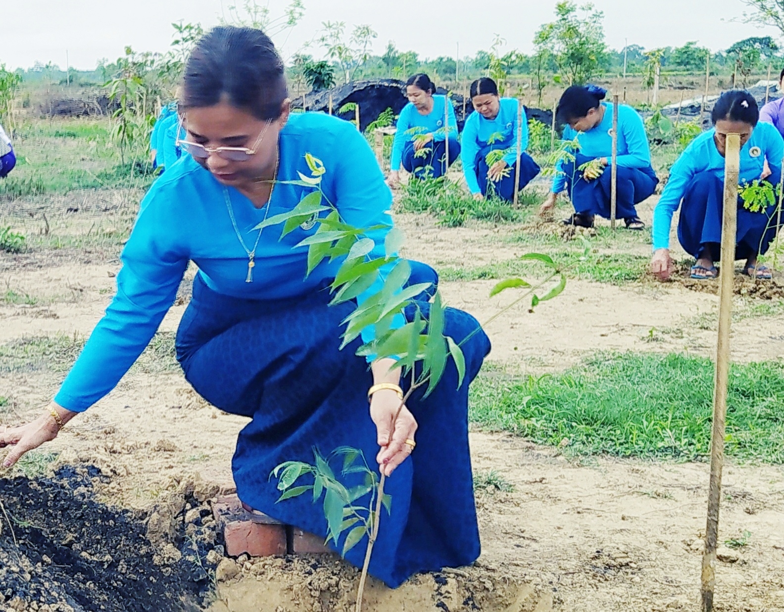 A total of 131 participants—including eight Forest Department staff, personnel from various township-level departments, members of the Maternal and Child Welfare Association, the Women’s Affairs Federation, and local residents—joined hands to plant 300 trees, including 50 Kantkaw, 100 teak, 30 Khayay, 30 Seintacho, 30 Seinpan, 30 Padauk, and 30 Meze trees.— Shwe Thar