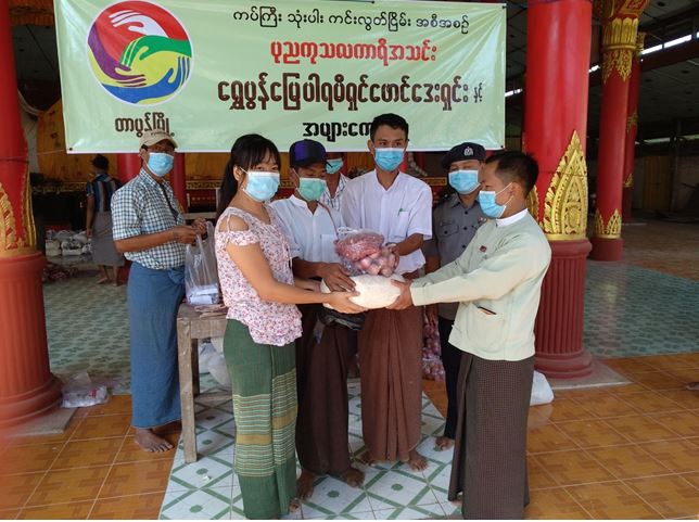 Local Philanthropic Groups in Nattalin Township jointly distributed food rations for the unemployed people and those who have no regular income amid the outbreak of COVID-19 in the town of Tapon, NattalinTownship, Bago Region this morning.