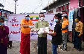 Kanbawza bank, well-wishers and Shan State Government jointly provided food rations to the unemployed people and those who have no regular income amid the outbreak of COVID-19 in Taunggyi, Shan State (South) this morning.