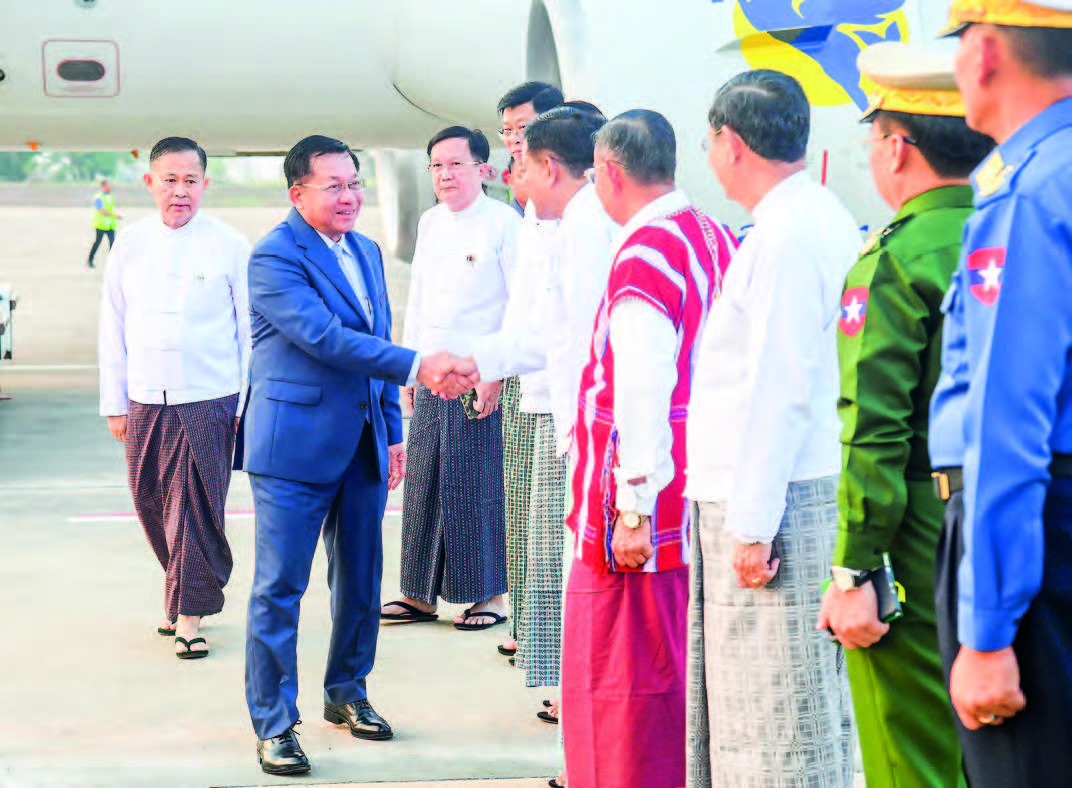 On arrival back at the Nay Pyi Taw Tatmadaw Airport yesterday evening, the high-level Myanmar goodwill delegation led by the Senior General was welcomed back by SAC Vice-Chairman Deputy Prime Minister Vice-Senior General Soe Win, Council Secretary General Aung Lin Dwe, council members, Union ministers, senior Tatmadaw officers from the Office of the Commander-in-Chief, the commander of Nay Pyi Taw Command, officials from the Embassy of the Russian Federation to Myanmar and the Military Attaché Office.