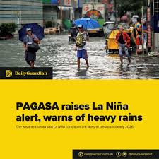 La Nina, the cool phase of the El Nino-Southern Oscillation, is linked to heavier rains and more tropical cyclones in the Philippines. PAGASA warned of possible floods and landslides from rain-bearing systems.