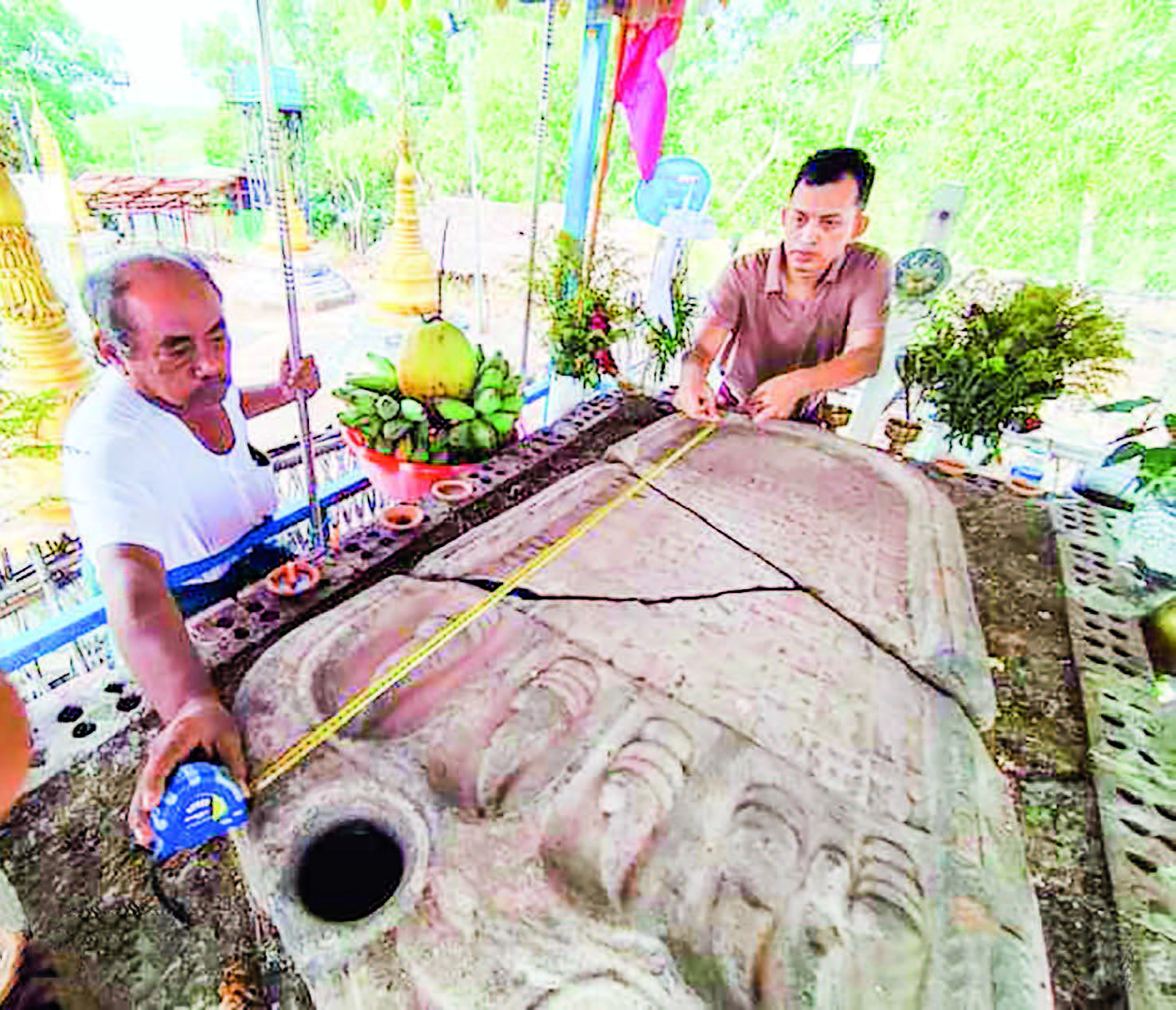 The Buddha’s marks made with sandstone were abraded, and a similar footprint was found in the ancient Pyu City of Ingapu Township, Ayeyawady Region. Therefore, U Bone Tint Kyaw suggested that this sculpture was a Pyu-era work, dating back over 1,200-2,000 years ago, he added.