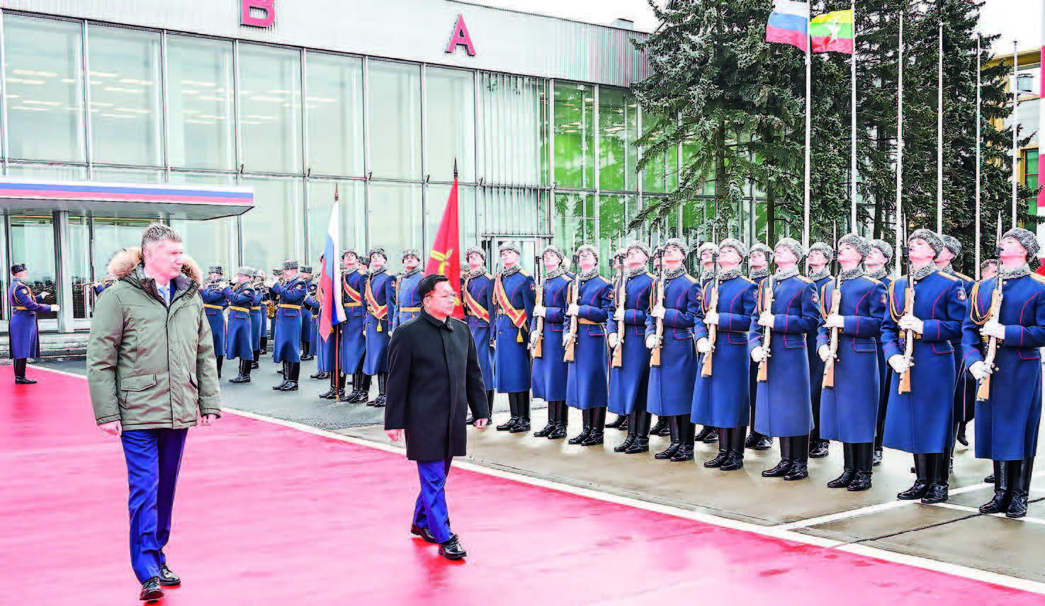 Russian Minister of Economic Development Mr Maxim Reshetnikov, the Deputy Minister of Foreign Affairs, officials, and the Guard of Honour saw off the senior general and his entourage.