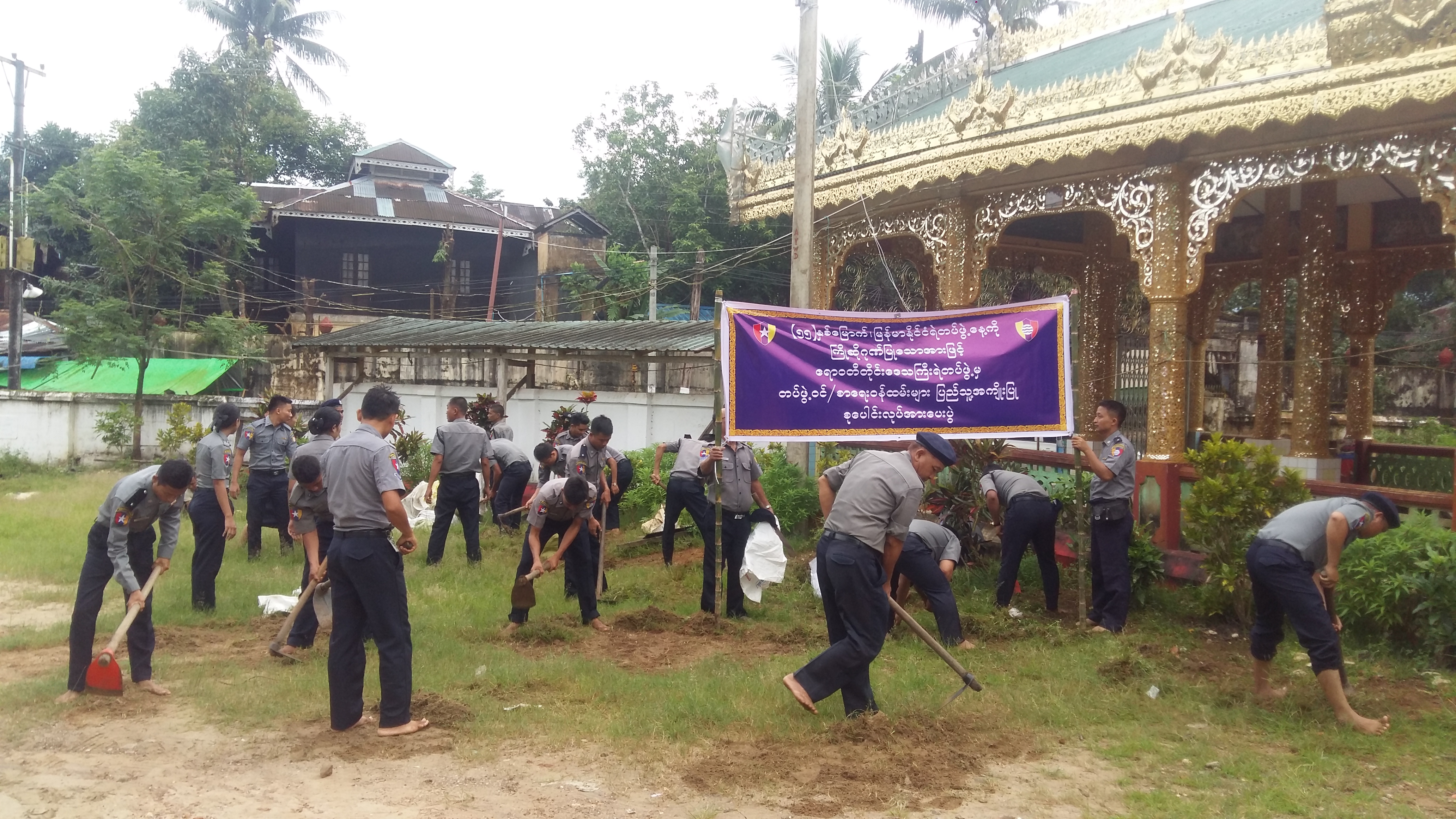 Hailing the 55th anniversary of Myanmar Police Force Day, members of the police conducted clean-up in the compound of Pathein General Hospital and Tagaung Mingalar pagoda in the town of Pathein in Ayeyarwady Region on September 14 and 15.