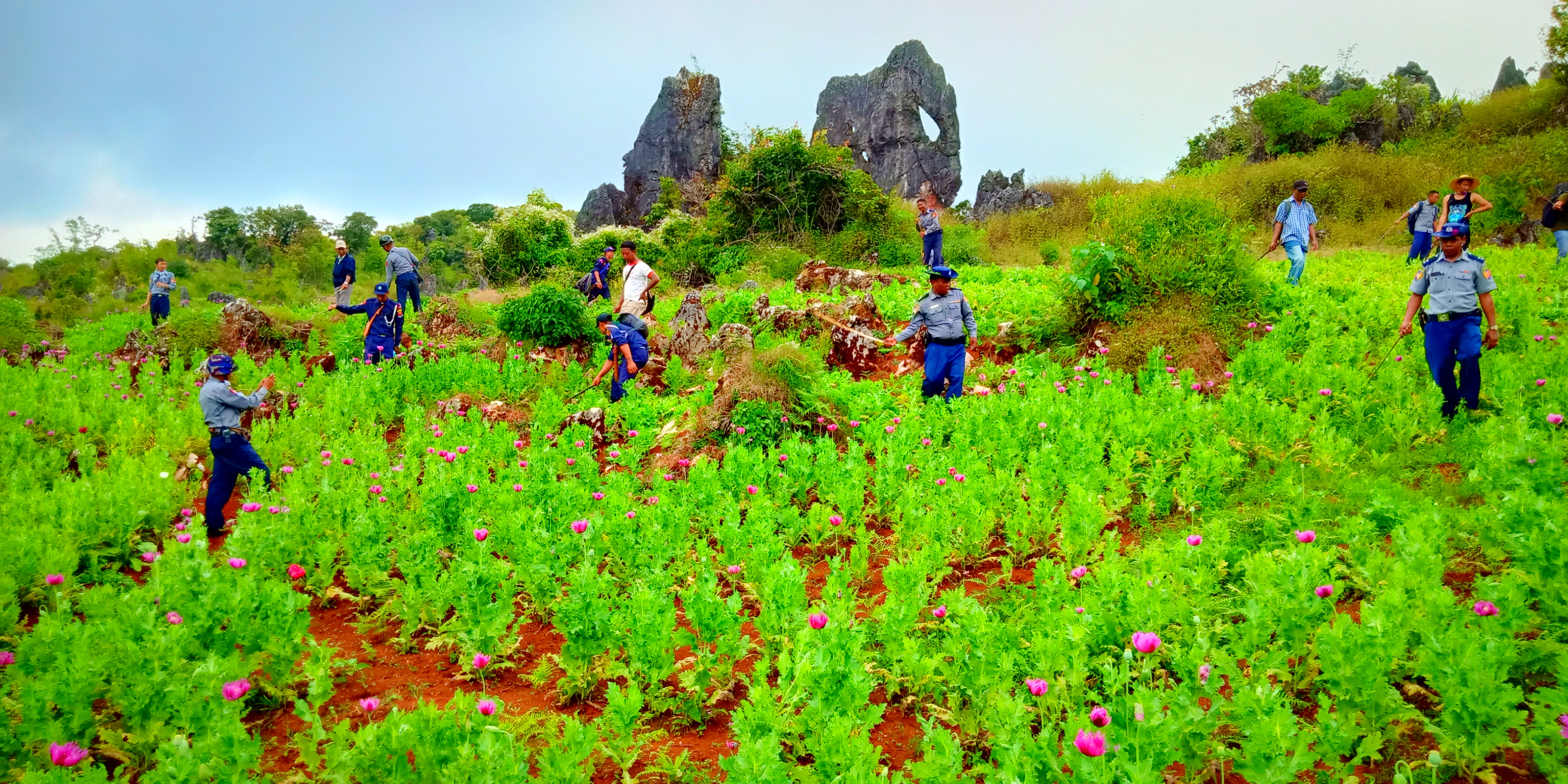 A combined squad led by Police Major Aung Myo Lwin annihilated poppy fields in Kalaw Township, Southern Shan State from 20 to 30 October.