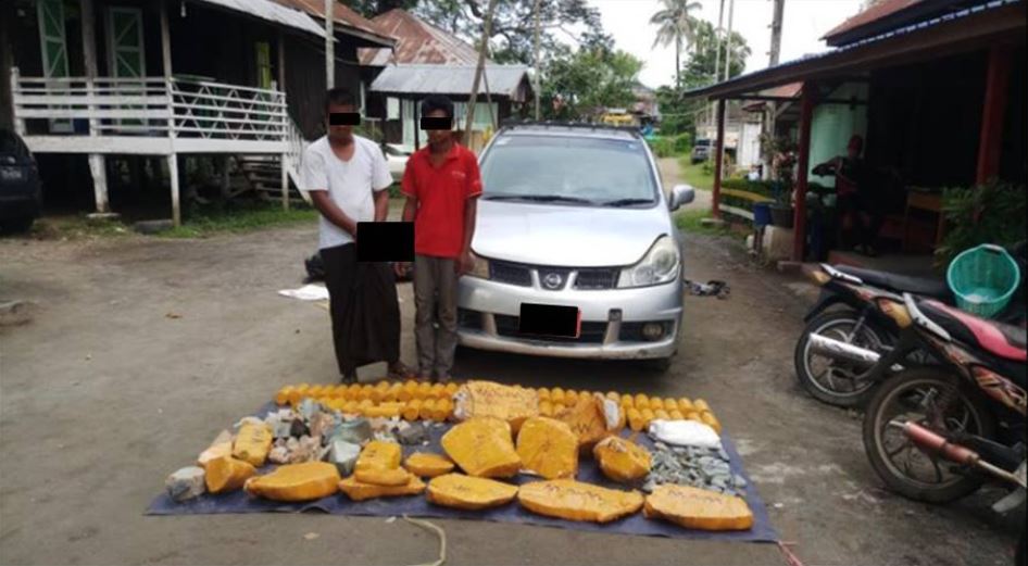 The driver identified as San Lwin, 30, and his coworker Aung Soe aka Chit Than, 31, have been charged under the Myanmar Gemstone Law by the local police.—MOHA