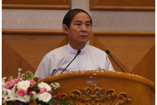 Then, Pyithu Hluttaw Speaker U T Khun Myat and Amyotha Hluttaw Speaker Mahn Win Khaing Than made speeches. The President, Vice Presidents, Pyithu Hluttaw Speaker, and Amyotha Hluttaw Speaker enjoyed lunch together with those present at the event.—MNA (Translated by Aung Khin)