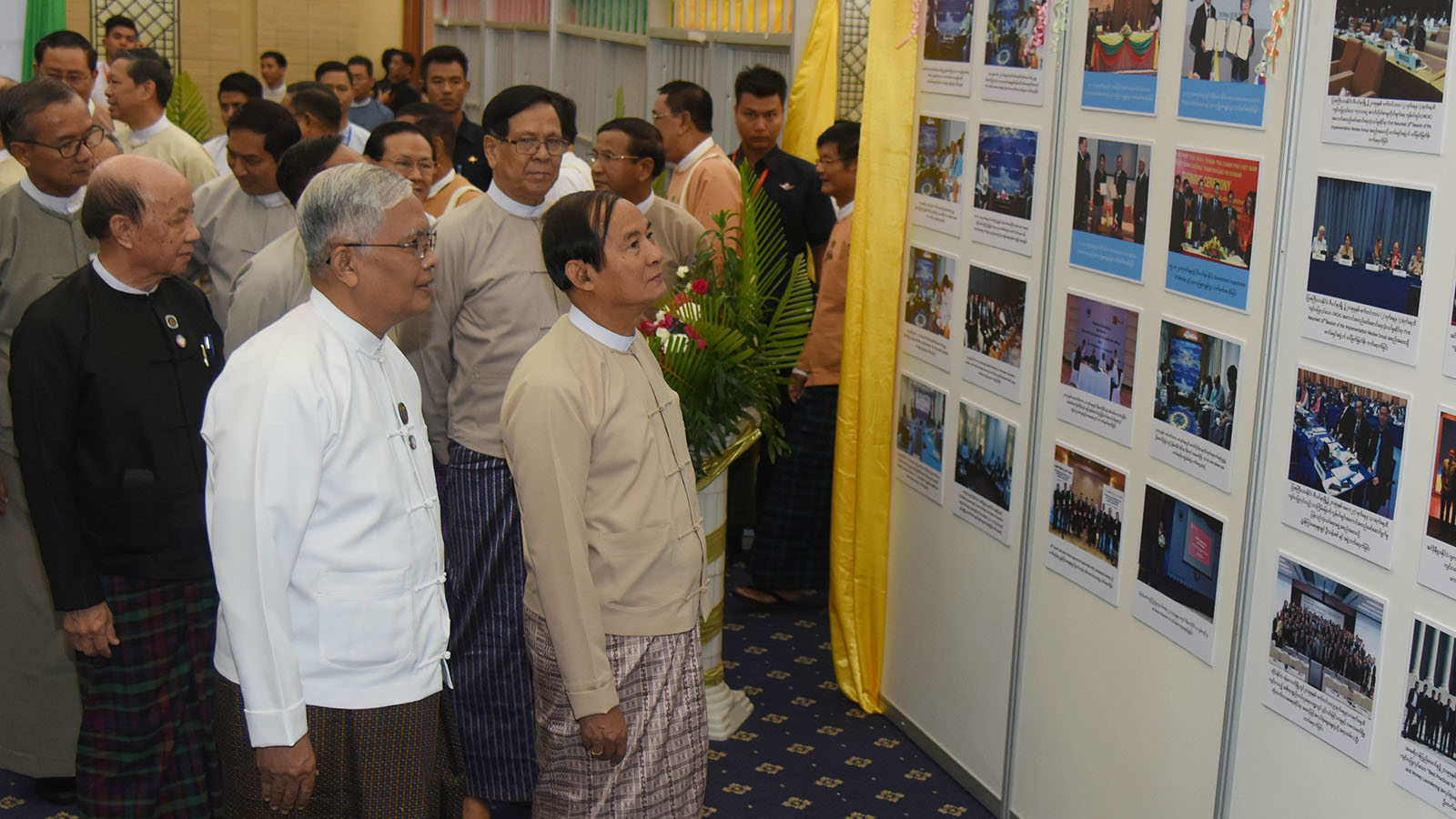 Following this, the President took a documentary photo with Pyithu Hluttaw Deputy Speaker, Amyotha Hluttaw Deputy Speaker, Union Ministers, attendees, UN Resident Coordinator, representatives from UNDP and UNODC, and award-winning students. He then observed the documentary exhibition relating to the anti-corruption processes.