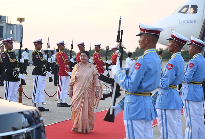 At the invitation of U Win Myint, President of the Republic of the Union of Myanmar, Her Excellency Mrs Bidya Devi Bhandari, President of the Federal Democratic Republic of Nepal, arrived in Nay Pyi Taw yesterday.