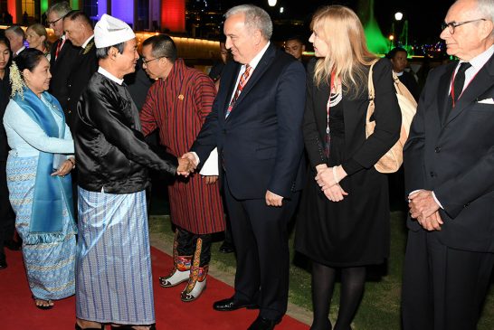 Present at the dinner were State Counsellor Daw Aung San Suu Kyi, Vice President U Myint Swe and wife Daw Khin Thet Htay, Vice President U Henry Van Thio and wife Dr Shwe Hlun, Speaker of Pyithu Hluttaw U T Khun Myat and wife Daw Yin May, Speaker of Amyotha Hluttaw Mahn Win Khaing Than and wife Daw Nang Kyin Kyi, Chief Justice of the Union U Htun Htun Oo, Commander-in-Chief of the Defence Services Senior General Min Aung Hlaing and wife Daw Kyu Kyu Hla, Chairman of the Constitutional Tribunal of the Union U Myo Nyunt, Chairman of the Union Election Commission U Hla Thein and wife Daw Aye Thida, Deputy Commander-in-Chief of Defence Services, Commander-in-Chief (Army) Vice Senior General Soe Win and wife Daw Than Than Nwe, Pyithu Hluttaw Deputy Speaker U Htun Htun Hein and wife Dr Sein Sein Thein, Amyotha Hluttaw Deputy Speaker U Aye Tha Aung, Union Ministers, the Union Attorney General, the Union Auditor General, the Chairman of the Union Civil Service Board, the Chairman of the Peace Commission, the Chairman of the Nay Pyi Taw Council, Central Bank of Myanmar Governor, Chairman of the Anti-Corruption Commission, Chairman of the Union Legal Aid Board, Joint Chief of Staff (Army, Navy, Air Force), senior military officers, judges of the Supreme Court, members of the Constitutional Tribunal, members of the Union election Commission, chairmen of Hluttaw affairs committees, deputy ministers, Hluttaw representatives, representatives of political parties, departmental heads, diplomats and their wives and Resident Representative of UNDP and Heads of UN agencies and their wives, titles and honours recipients and their families and invited guests.