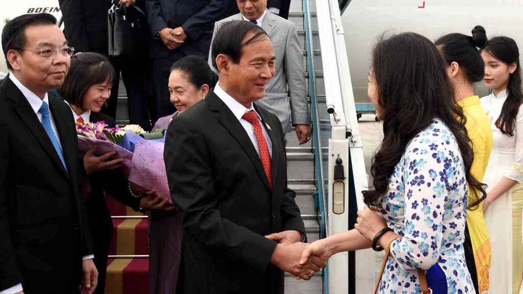 President U Win Myint and First Lady Daw Cho Cho departed by special flight to Hanoi, Viet Nam, from Nay Pyi Taw yesterday as part of an official working visit and to attend the 16th UN Vesak Day celebrations.