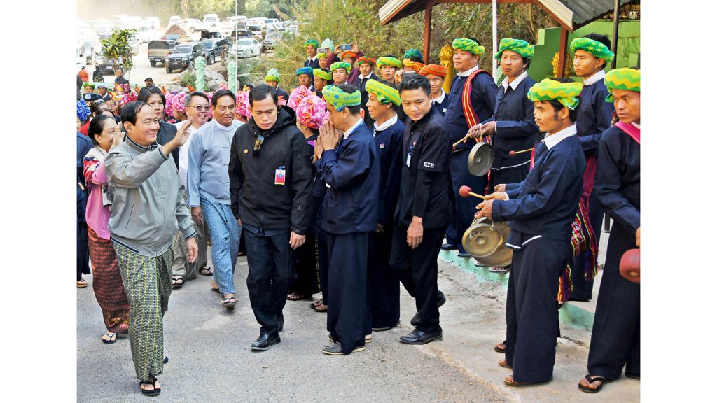 President U Win Myint and First Lady Daw Cho Cho who were in Taunggyi, the capital of Shan State, accompanied by Union Ministers Lt-Gen Ye Aung, Dr. Aung Thu and U Ohn Win, Chief Minister of Shan State Dr. Lin Htut, Chief of Myanmar Police Force Police Lt-Gen Aung Win Oo and officials, left the city by car and arrived in Hopong Township in Pa-O Self-Administered Zone.