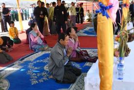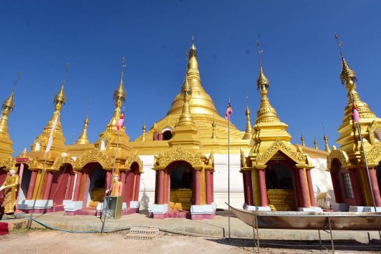 Afterwards, they arrived at the Htansan Shwedagon Pagoda, a replica of the Shwedagon in Yangon, and were welcomed by Pa-O people. The president cordially conversed with them.