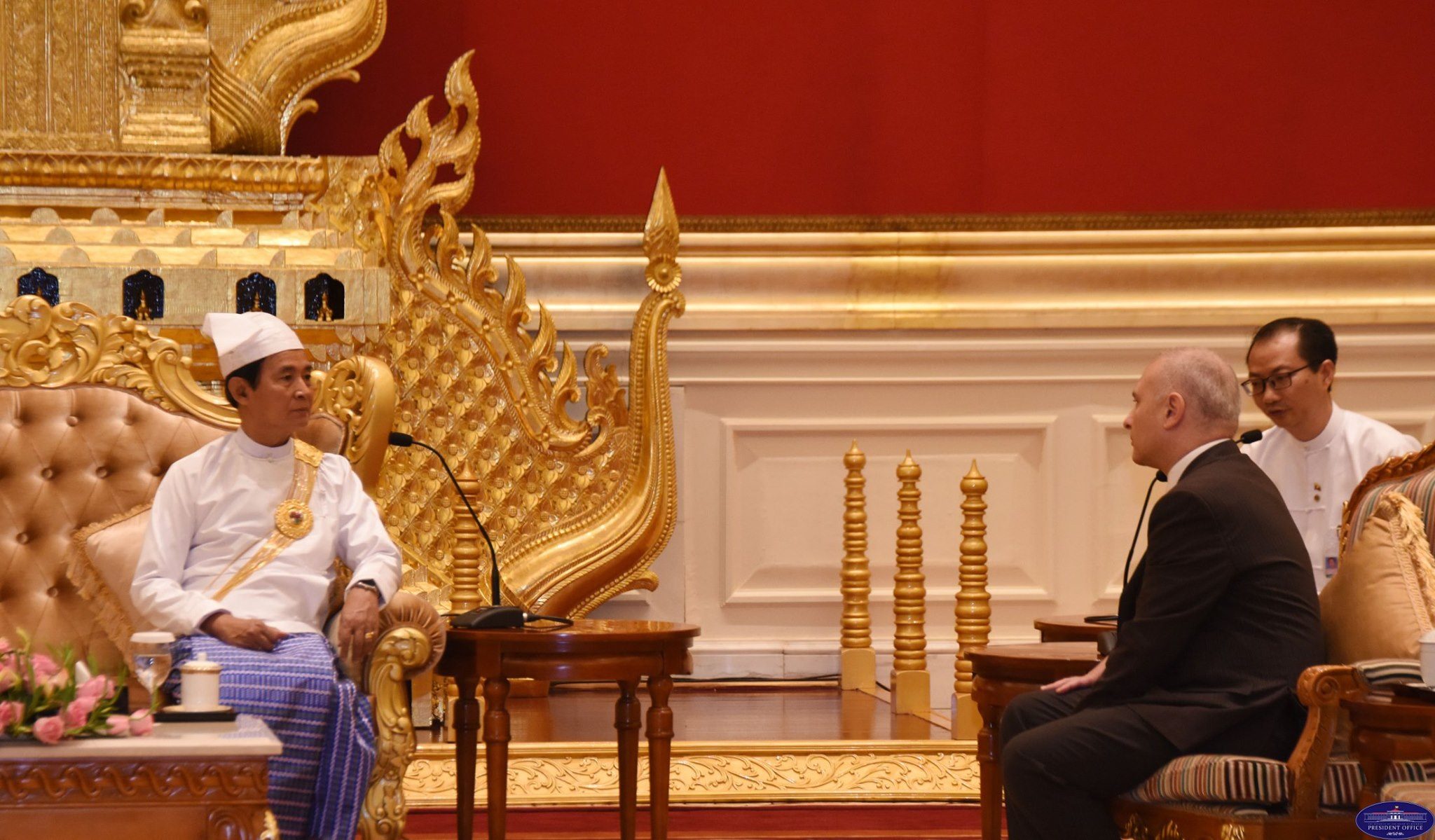 Mr Nikoloz Apkhazava, the newly-accredited Ambassador of Georgia to the Republic of the Union of Myanmar, presented his Letters of Credence to U Win Myint, President of the Republic of the Union of Myanmar, at the Credentials Hall of the Presidential Palace, in Nay Pyi Taw at 10:40 am yesterday.