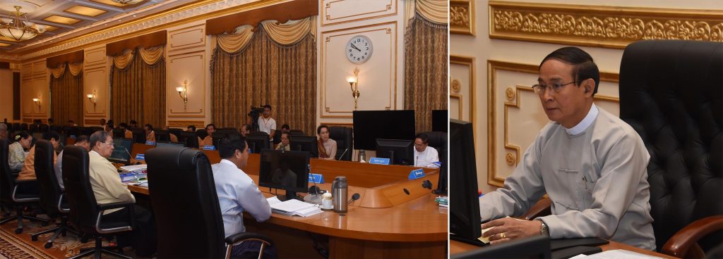 President U Win Myint, Chairman of the Finance Commission, addressed the Finance Commission meeting 3/2019 held yesterday morning at the Presidential Palace in Nay Pyi Taw.