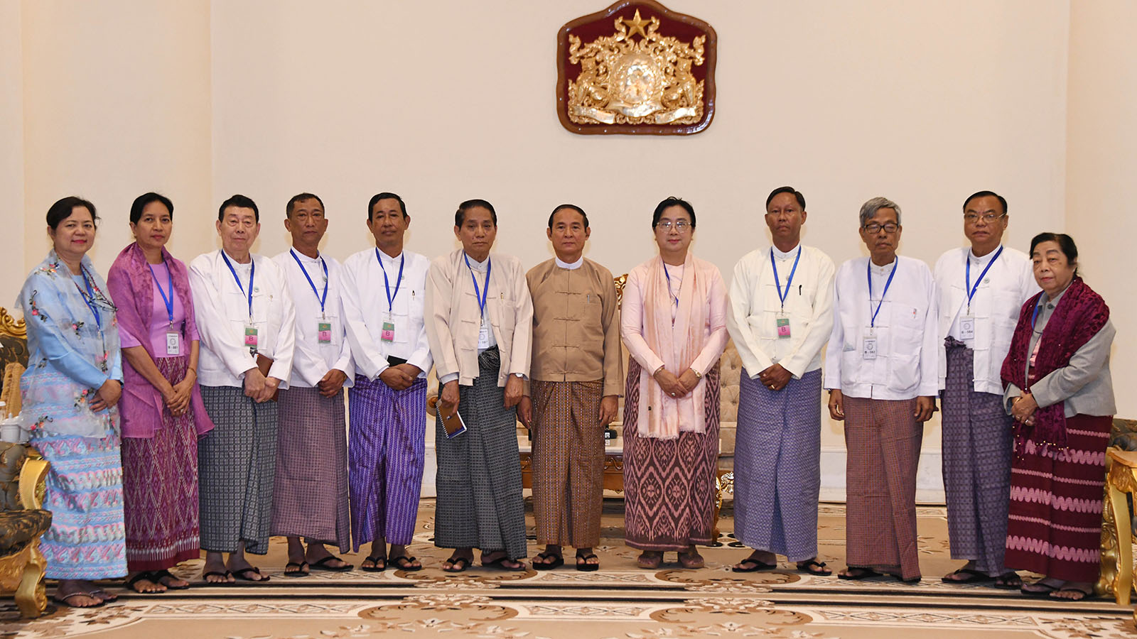 President U Win Myint received a delegation of the Myanmar National Human Rights Commission led by its Chairman U Hla Myint at the Presidential Palace in Nay Pyi Taw yesterday morning.