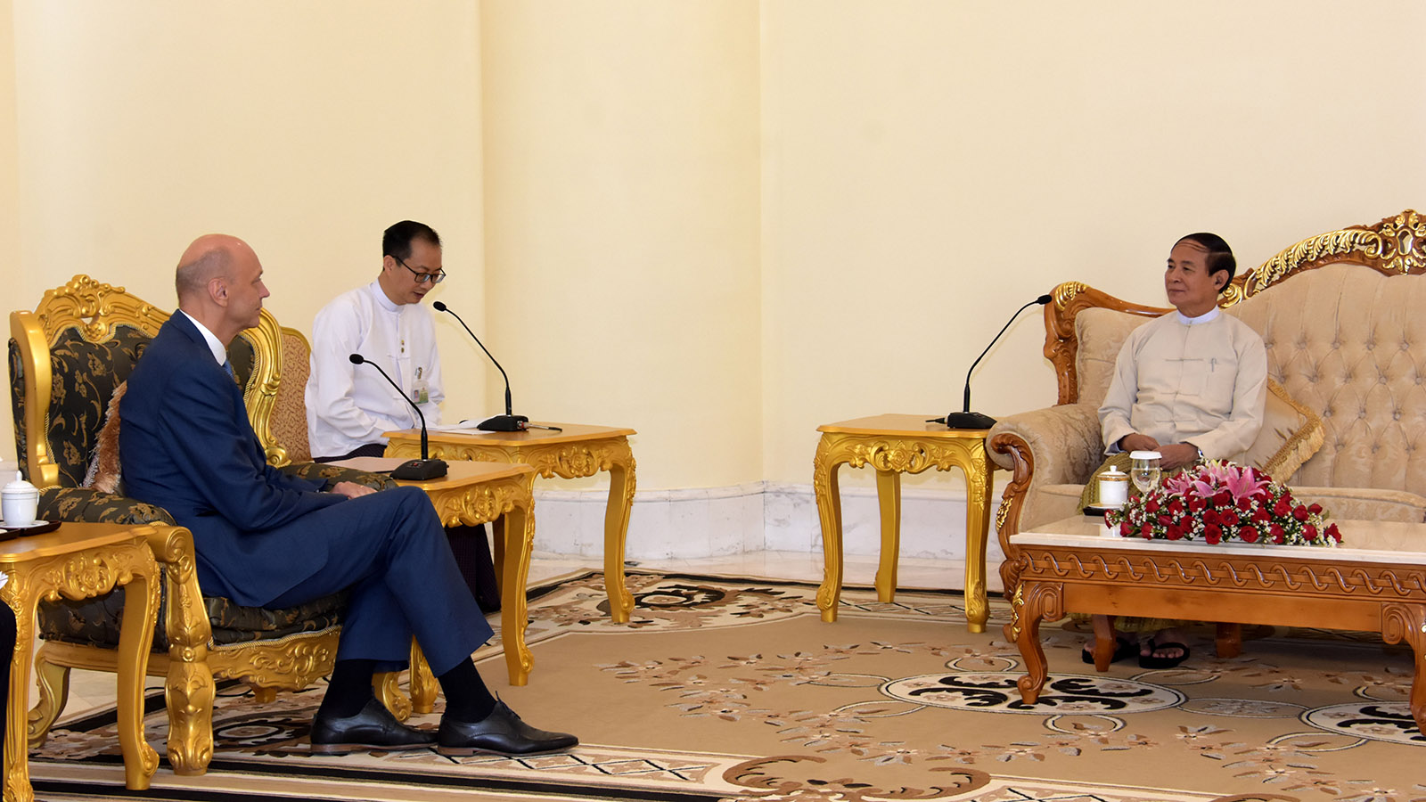 President U Win Myint received outing Ambassador of the Czech Republic to Myanmar, Mr Jaroslav Dolecek, who is leaving Myanmar after completion of his tour of duty in Myanmar at the Presidential Palace in Nay Pyi Taw yesterday.