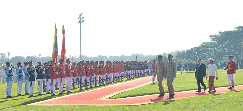 It was a pleasure and of a great satisfaction to meet and discuss with State Counsellor Daw Aung San Suu Kyi in bilateral meeting and with President U Win Myint. It was firmly believed that with the aims set by the leaders of the two countries, cooperation of the people and firm decisions made, Myanmar-Viet Nam all round cooperation and friendly relationship would strengthen on a new a foundation and beneficial and effective progress and development would continue.