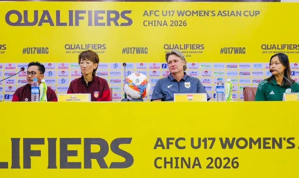 A press conference for the 2026 AFC U17 Women’s Qualifiers Group C, in which the Myanmar U17 women’s team is competing was held at the press briefing hall of Thuwunna YTC in Yangon yesterday. Head coaches from Myanmar, Indonesia, and Macau SAR attended the event.