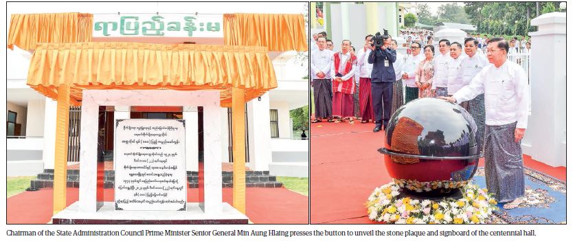 Chairman of the State Administration Council Prime Minister Senior General Min Aung Hlaing attended the ceremony to inaugurate the centennial hall of Yezin University of Agriculture in conjunction with the centennial celebration at the university yesterday morning.