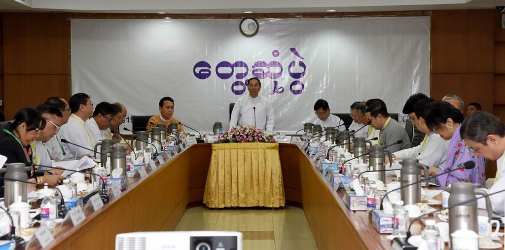 Vice President U Myint Swe presided over the meeting which was also attended Yangon Region Chief Minister U Phyo Min Thein, Deputy Ministers U Aung Htoo, U Win Maw Tun and U Maung Maung Win, Yangon Mayor U Maung Maung Soe, chairpersons of five work committees, the vice chairpersons and officials, UMFCCI Chairman U Zaw Min Win, vice presidents and CEC members, permanent secretaries, directors-general, departmental heads, the representatives from Myanmar Livestock Federation, Muse – Namkham Border Trade Chamber of Commerce, Myanmar Fruit, Flower and Vegetable Producer and Exporter Association and officials.