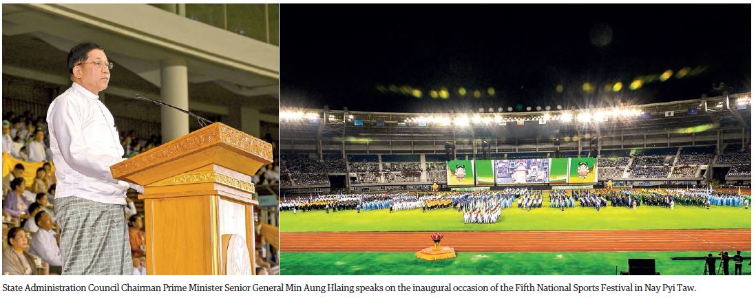 State Administration Council Chairman Prime Minister Senior General Min Aung Hlaing delivered a speech at the opening ceremony of the Fifth National Sports Festival 2024 at Wunna Theikdi Stadium in Nay Pyi Taw yesterday evening.