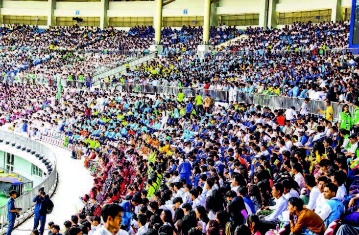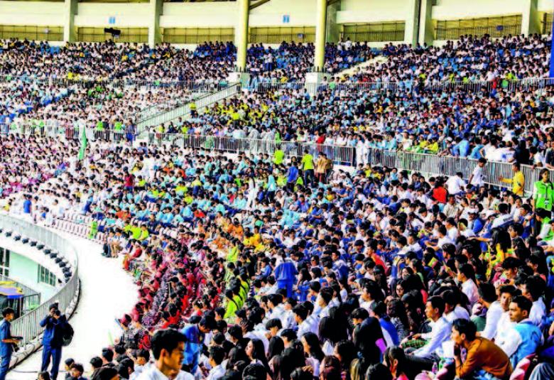 The Senior General and his wife, and dignitaries enjoyed choral dances representing six eras of Myanmar performed by artistes from the Fine Arts Department, demonstrated entertainment and songs by members from the Myanmar Paralympic Sports Federation, students from Nay Pyi Taw State Technical High School, Myanmar Motion Pictures Organization, Myanmar Chinlone Federation, Myanmar Theatrical Association, Myanmar Comedians’ Association, students from University for Development of National Races, and Nationalities Youth Resource Development Degree College, performances of students from the Ministry of Religious Affairs and Culture, the Ministry of Education and the Ministry of Science and Technology.