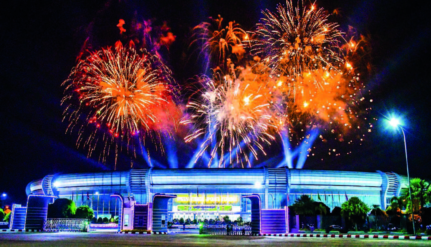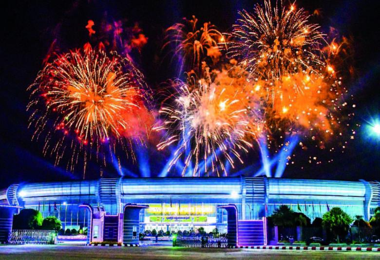 The fireworks were displayed to mark the successful completion of the opening ceremony of the National Sports Festival. The Senior General and his wife waved to the attendees and cordially greeted the veteran athletes and artistes.