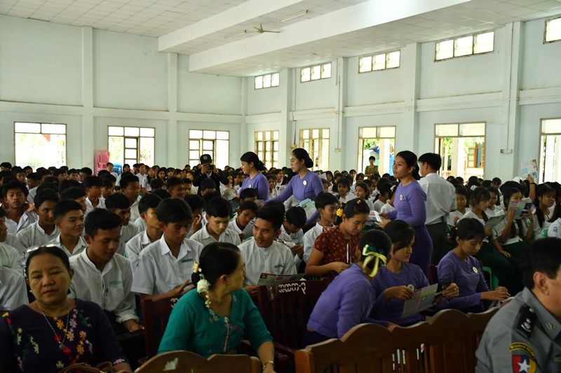 Mandalay Region’s Anti-Drug Squad-18 and Kyaukse District Maternal and Child Welfare Supervisory Body jointly conducted informative talks on scourge of drugs at the meeting hall of B.E.H.S.-3 in the town of Kyaukse, Kyaukse District of Mandalay Region this morning.