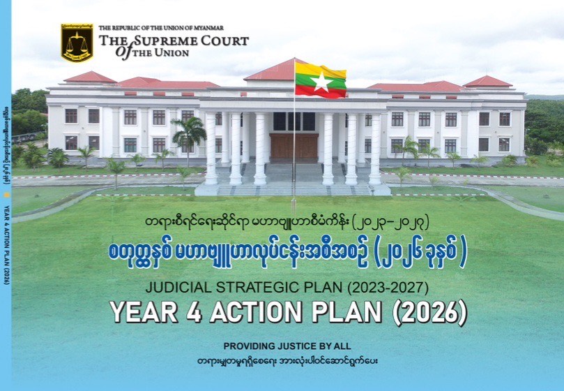 THE Supreme Court of the Un­ion has been implementing the Judicial Strategic Plan (2023- 2027) with the motto “Provid­ing Justice by All”. The yearly Action Plans have been drawn and implemented in order to achieve the objectives of the Strategic Plan. The Year 4 Ac­tion Plan (2026) of the Judi­cial Strategic Plan (2023-2027) is published today in Myan­mar-English versions.