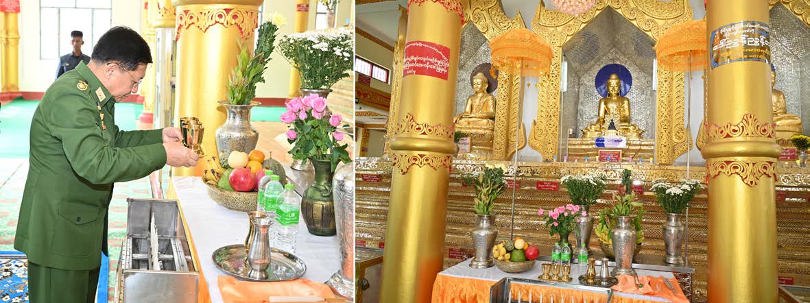 The Senior General and party also paid homage to the Buddha image at the Pada footprint hall of the pagoda. — MNA/TTA