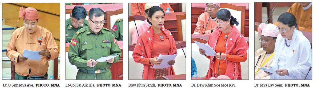 Daw Khin Sandi of Launglon constituency and Dr. Daw Khin Soe Moe Kyi of Pyay constituency supported the motion, advising the ministries concerned to lay down effective plans and urging the Ministry of Planning and Finance, the Finance Commission, and the Pyithu Hluttaw to provide a suitable budget, when the ministries seek funds from them.