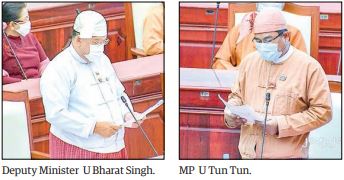 MP U Tun Tun from Pwintbyu constituency asked about the increasing amounts of foreign investments and national investments from April 2016 to December 2019, as well as the prospect of future investments, and question was answered by Deputy Minister for Investment and Foreign Economic Relations U Bharat Singh; MP Win Myint Aung from Dabayin constituency asked about removal of paddy warehouses in Shwebo, Wetlet and Saipyin town of Debayin townships, and it was answered by Deputy Minister U Aung Htoo; MP U Myo Zaw Oo from Lewe constituency asked about promotion of Alar village-tract to Alar Town in his constituency, Nay Pyi Taw Council member U Aye Maung Sein replied the query; MP Dr Saw Naing from South Okkalapa constituency asked for a long term project for using gravity system water supply technique, together with the existing pumping system from Ngamoeyeik water treatment plant, to be able to reduce electricity consumption, and the question was answered by Nay Pyi Taw Council Member U Nyi Tun.