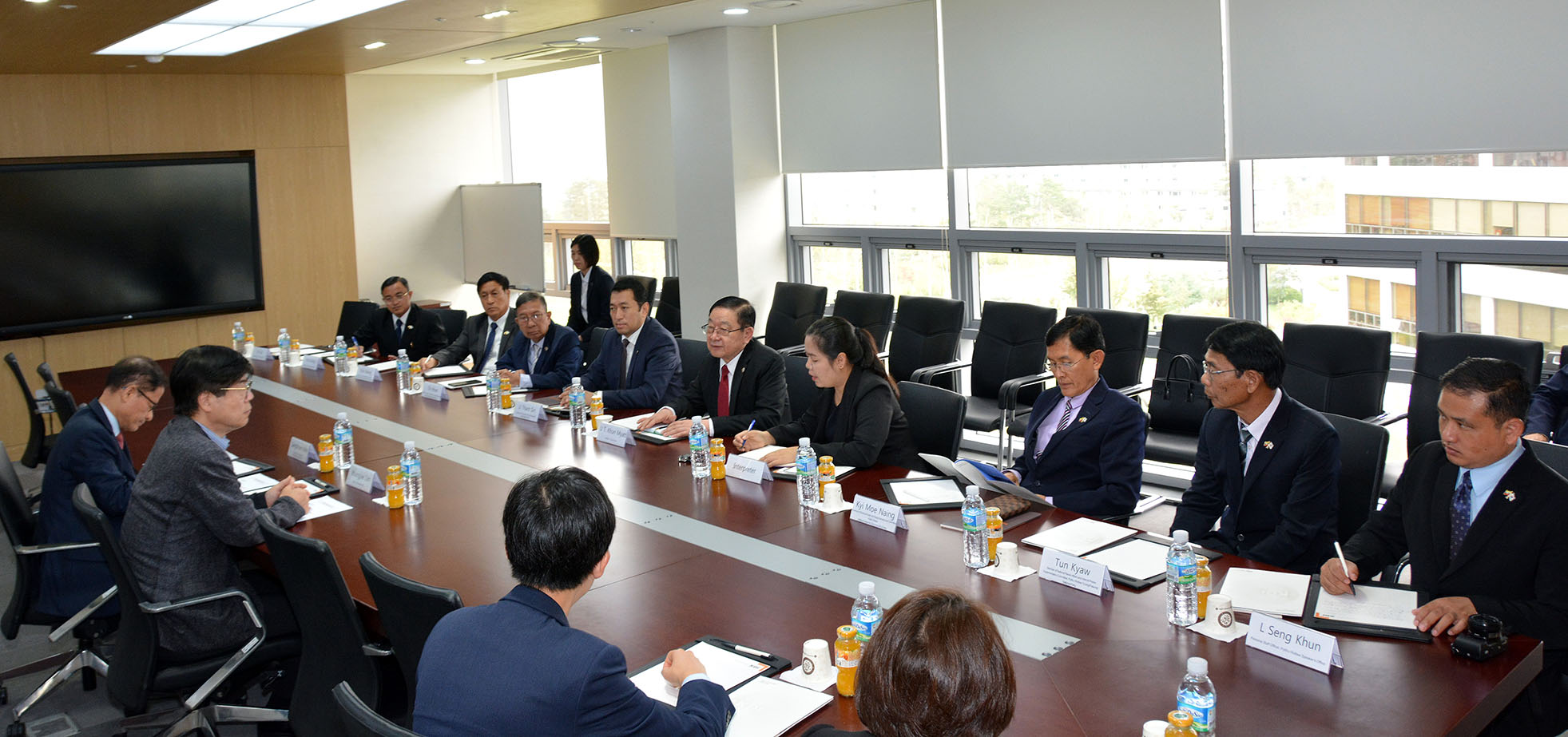 During his goodwill visit to the Republic of Korea yesterday, Pyithu Hluttaw Speaker U T Khun Myat held a meeting with the Vice President of the Korea Development Institute (KDI), Mr Youngjae Lim. During the meeting, they discussed bilateral relations and cooperation, assistance received from KDI, and promoting collaboration between the governments, peoples and parliaments of both countries.