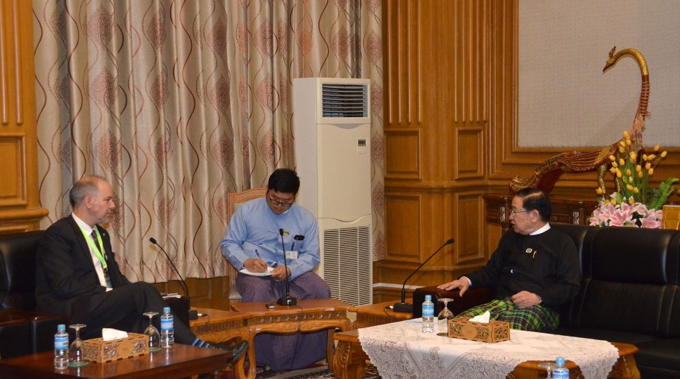 Pyithu Hluttaw Speaker U T Khun Myat received Ambassador of Canada Mr Francois Lafreniere at the reception hall of Hluttaw building in Nay Pyi Taw yesterday afternoon.