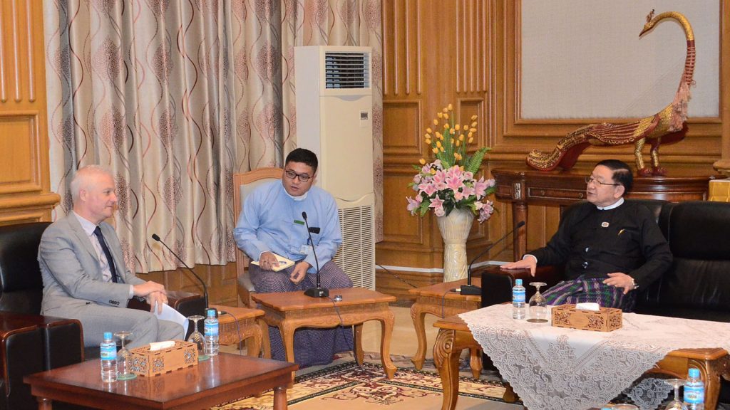 Pyithu Hluttaw Speaker U T Khun Myat received Swiss Ambassador Mr Tim Enderlin at the Pyithu Hluttaw building yesterday.