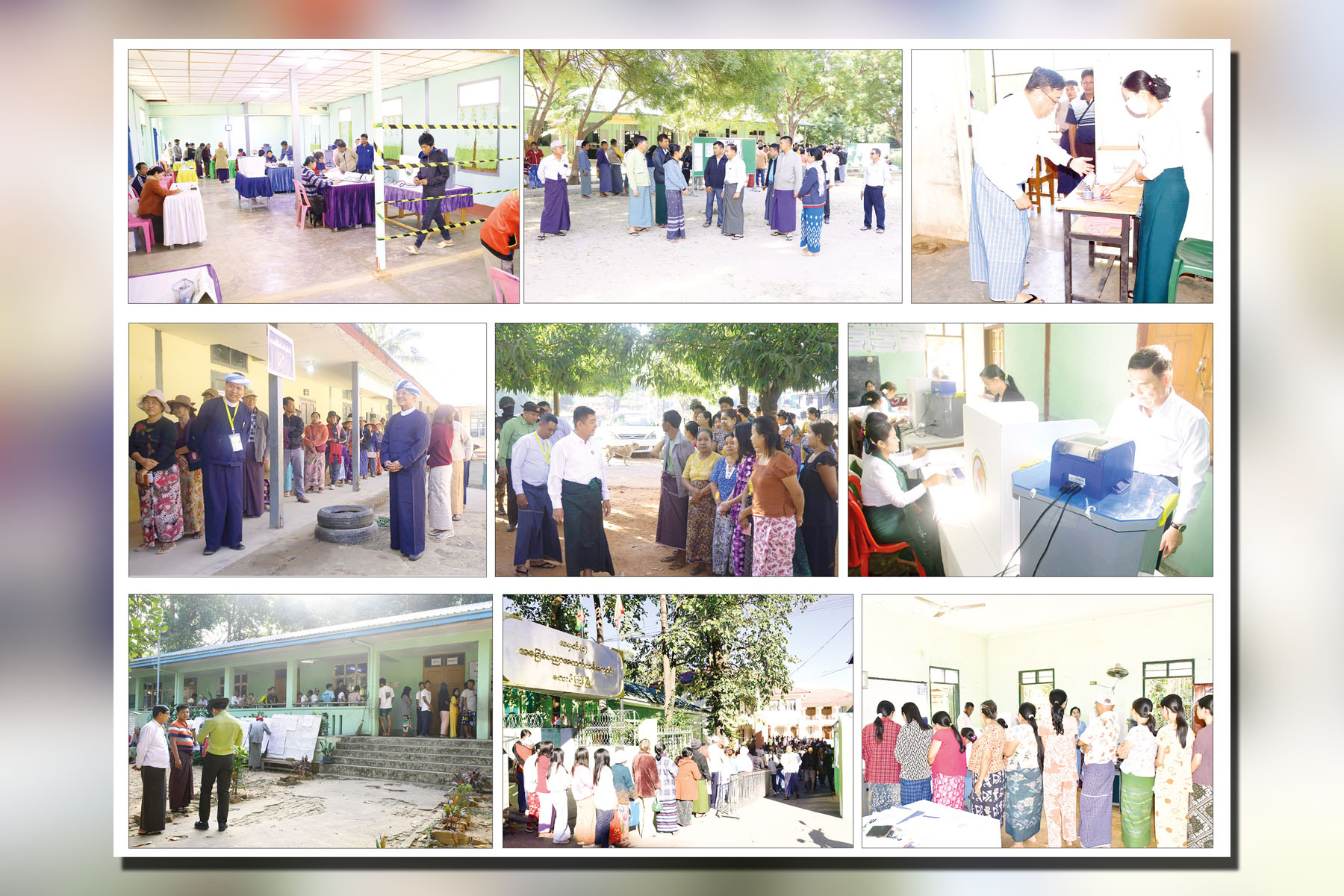 In Rakhine State, the elec­tion is being held in Sittway, Kyaukpyu and Manaung town­ships, where voters are peace­fully casting their ballots at a total of 164 polling stations.