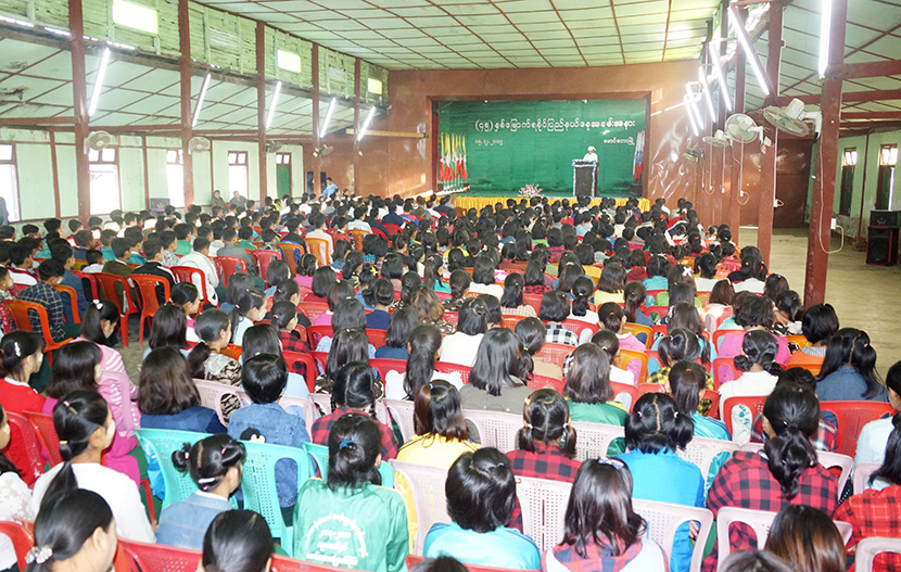 At the ceremony, Deputy District Administrator U Ye Htoo read the message from President U Win Myint commemorating the 45th anniversary of Rakhine State Day. The ceremony was attended by about 700 people, including District Police Force Commander Police Lt-Col Aung Myint Htay, Hluttaw representatives, district/township-level department officials, teachers and students from Nan Thar Taung volunteer school, and students from youth development training school. —Thet Lwin Soe (IPRD)
