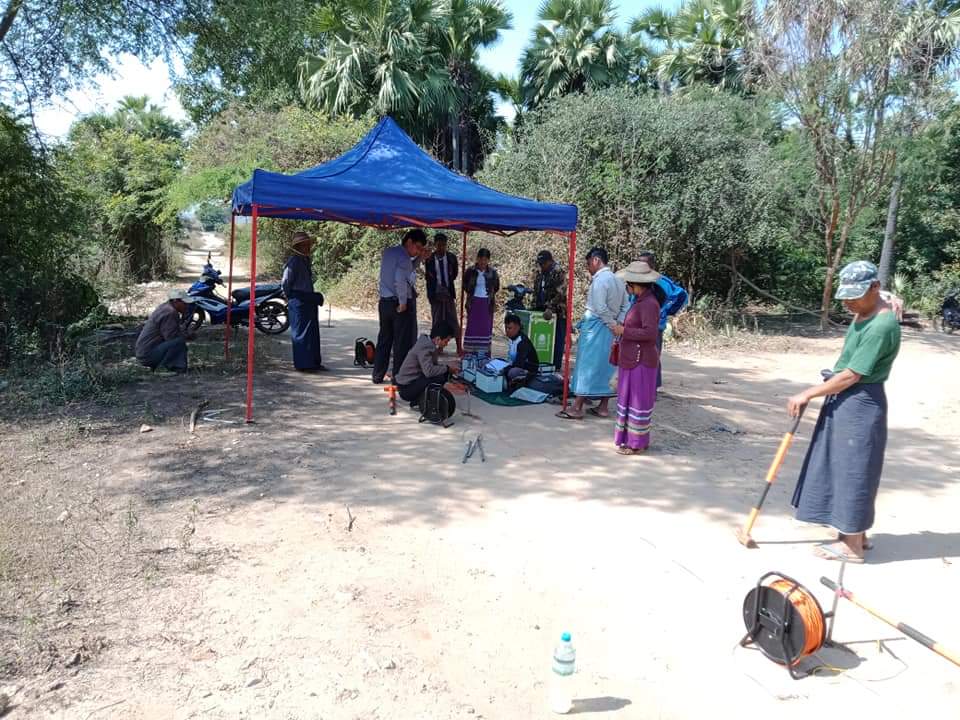 Staff from the township RDD, Taw Kyaunggyi village-tract administrator U Hla Htay, village people from Ywa Htin village took part in ground water locating activities.—Ei Ei Aung( Chaung-U)