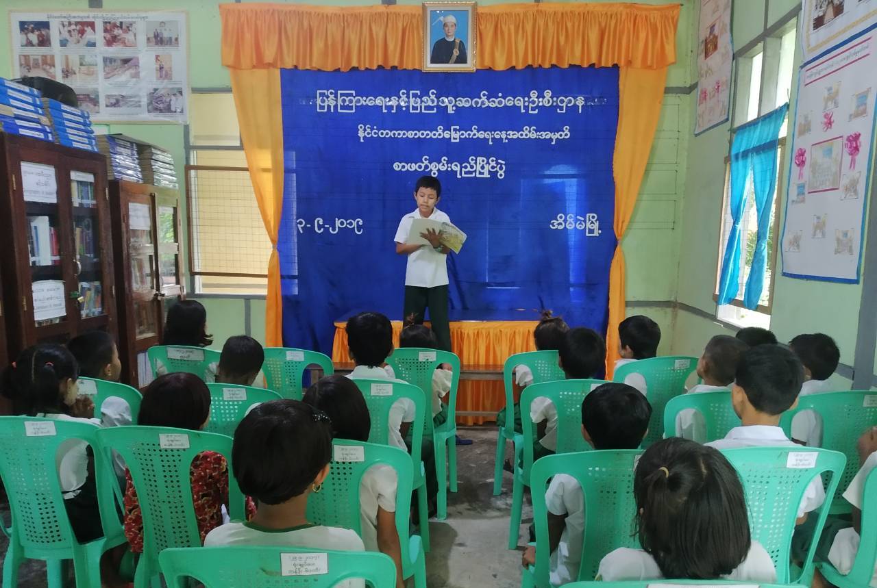 The contest aims to make children aware of great days, to help develop the knowledge of children, to help children become good public speakers and to instill creative skills in children, said Daw Htay Htay Hlaing, head of the township IPRD. Altogether ten children competed in the contest, reading a book named “ Do Do and Peace”.