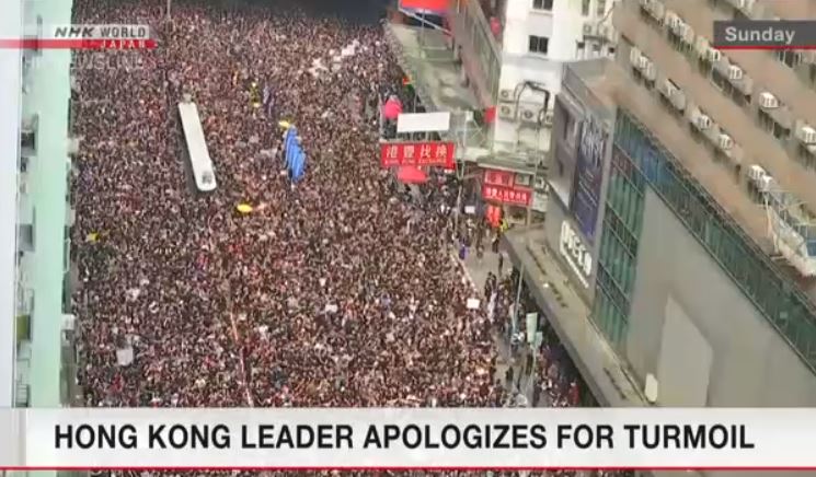 In response to Sunday's rally, Hong Kong's Chief Executive issued a statement later in the day apologizing to the territory's residents. In the statement, Carrie Lam admitted that the bill's deficiencies have led to substantial controversies and disputes, and caused disappointment and grief among the people.