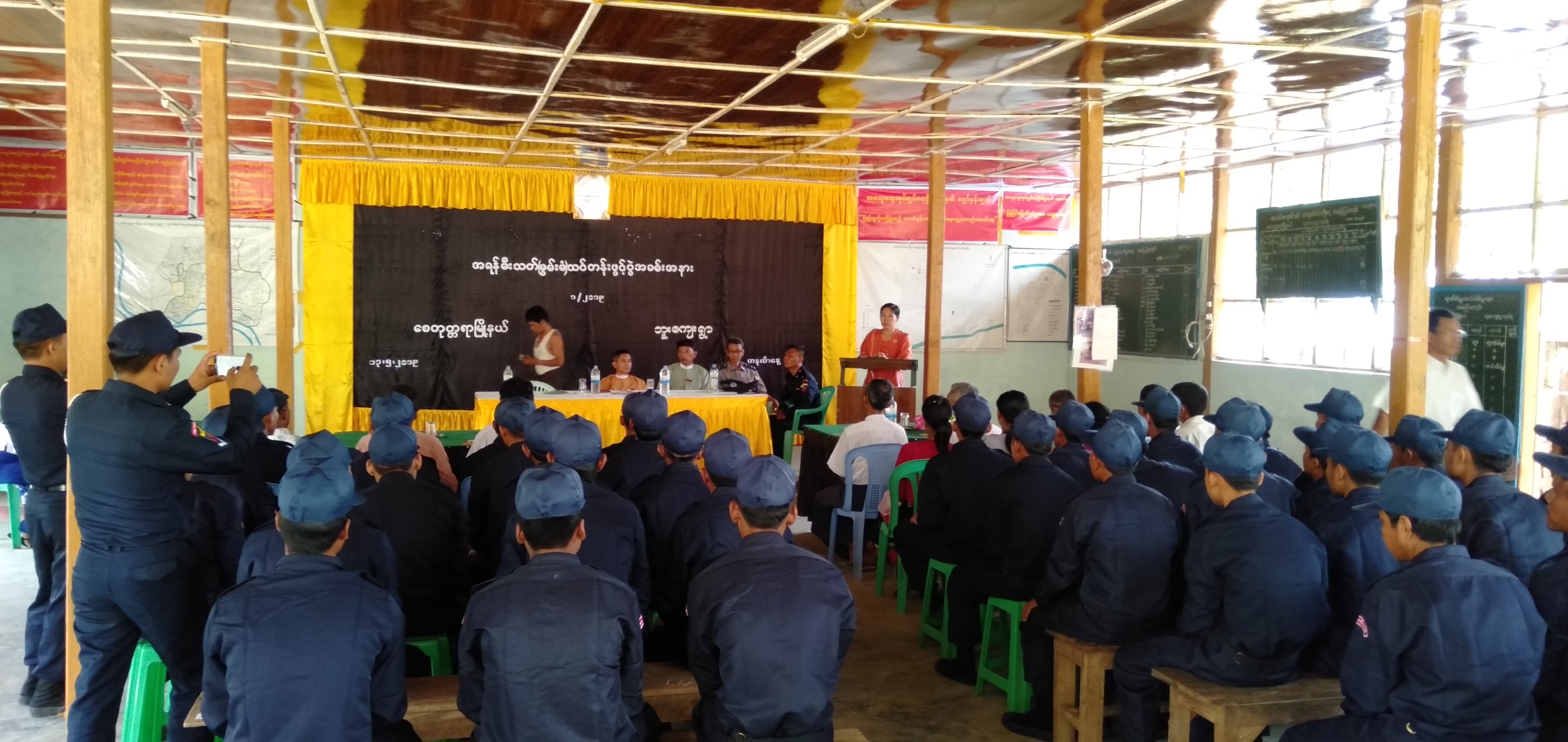 The training course is organized by the Fire Services Department. At first, Lawmaker for regional constituency No (1) Daw Nyo Nyo Oo gave an opening speech and an official from the township fire brigade explained the purpose of the training course.