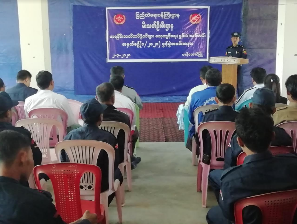 At the event, Township Administrator U Kyan Aye gave a speech and an official from the Fire Services Department explained the purpose of training course. Next, the township administrator and concerned officials presented uniforms to the trainees.