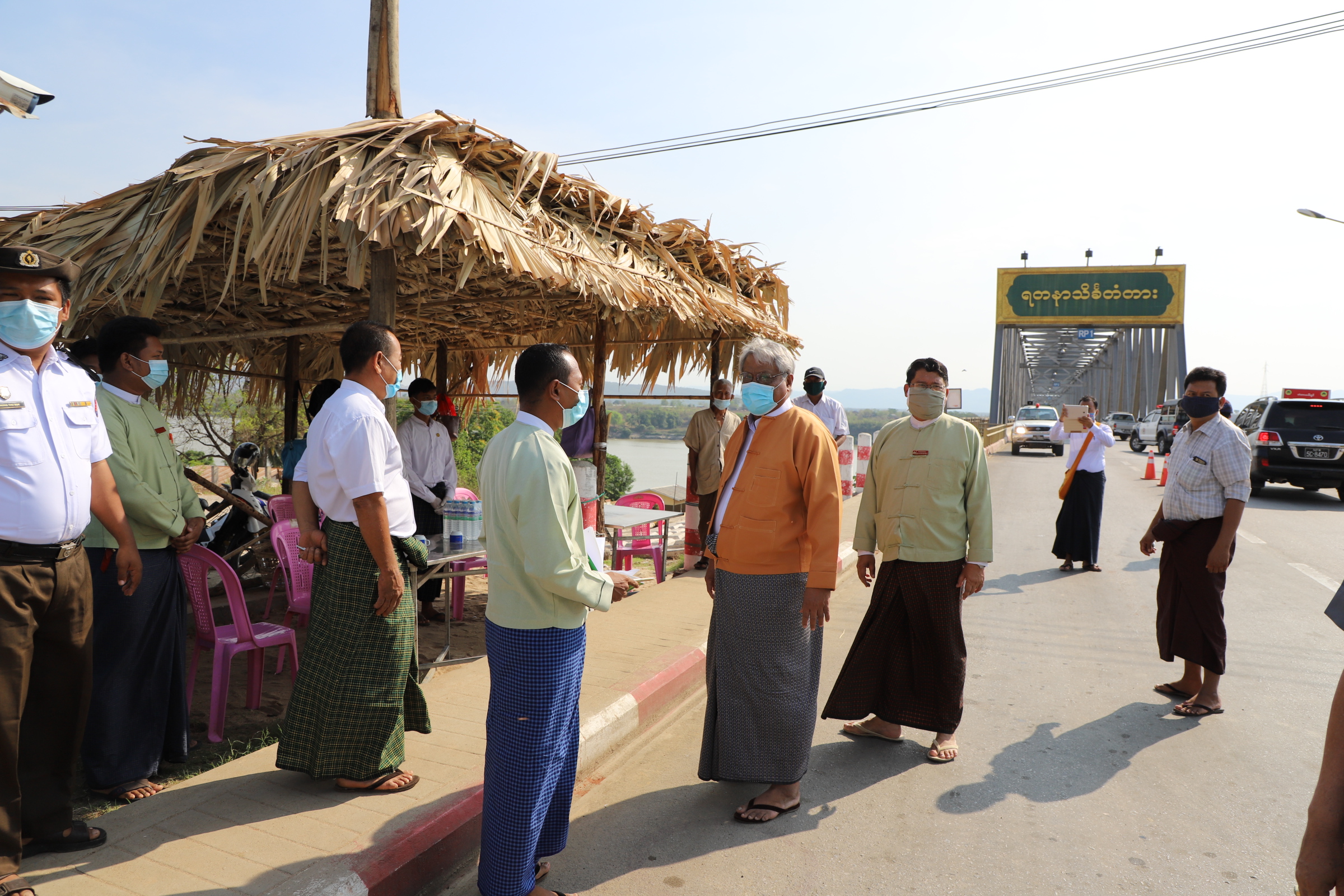 Next, the officials went to temporary market opened for the public’s convenience amid the outbreak of COVID-19 and inspected the checkpoint near Yadanarthinga Bridge. The officials attended to the needs of the preventative measures for COVID-19.