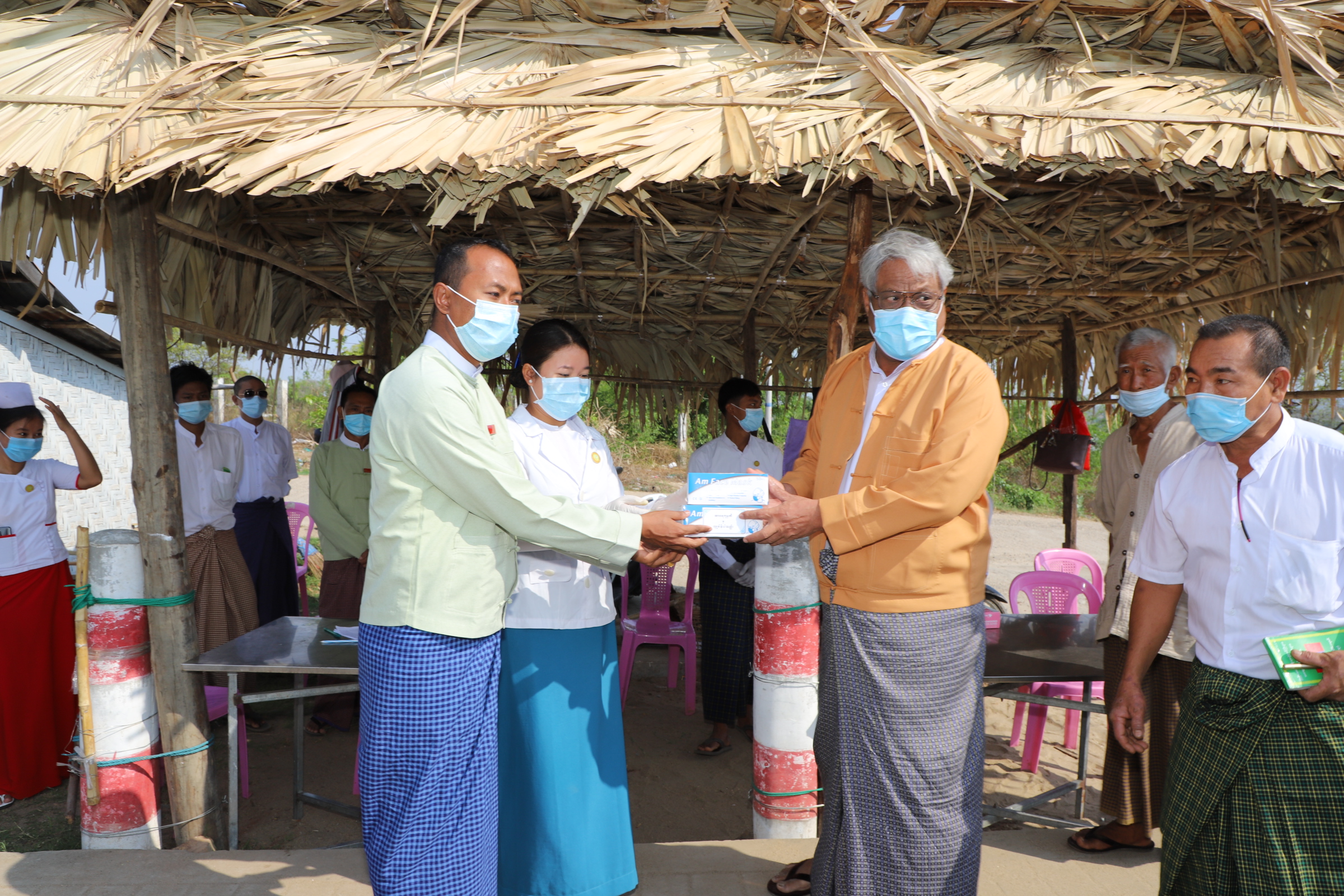 First, the Regional Chief Minister and officials inspected Community Based Facility Quarantine Center opened in BEHS in Kyaukmyaung and provided medical supplies to the responsible people from the center. They then urged people who were in the center to follow the instruction guided by the regional government.